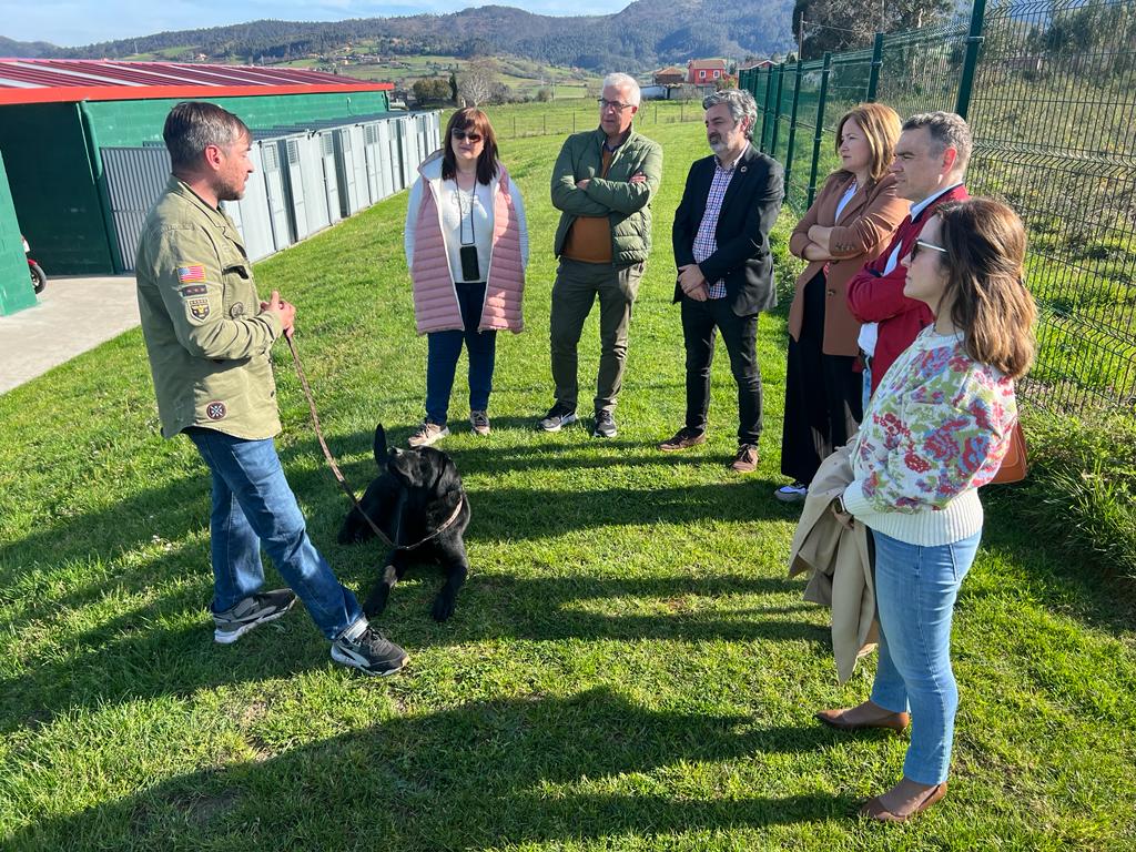La primera parada de la tarde tuvo lugar en el Centro de adiestramiento y hotel canino Mi fiel escudero en Villa (Corvera de Asturias), donde se construyeron tres módulos de caniles de distinta capacidad y el cierre perimetral de la finca. Su ubicación en el centro de la región permite ofrecer sus servicios a los municipios del entorno, donde hay un gran número de perros censados, no habiendo en la comarca ningún centro de características similares.