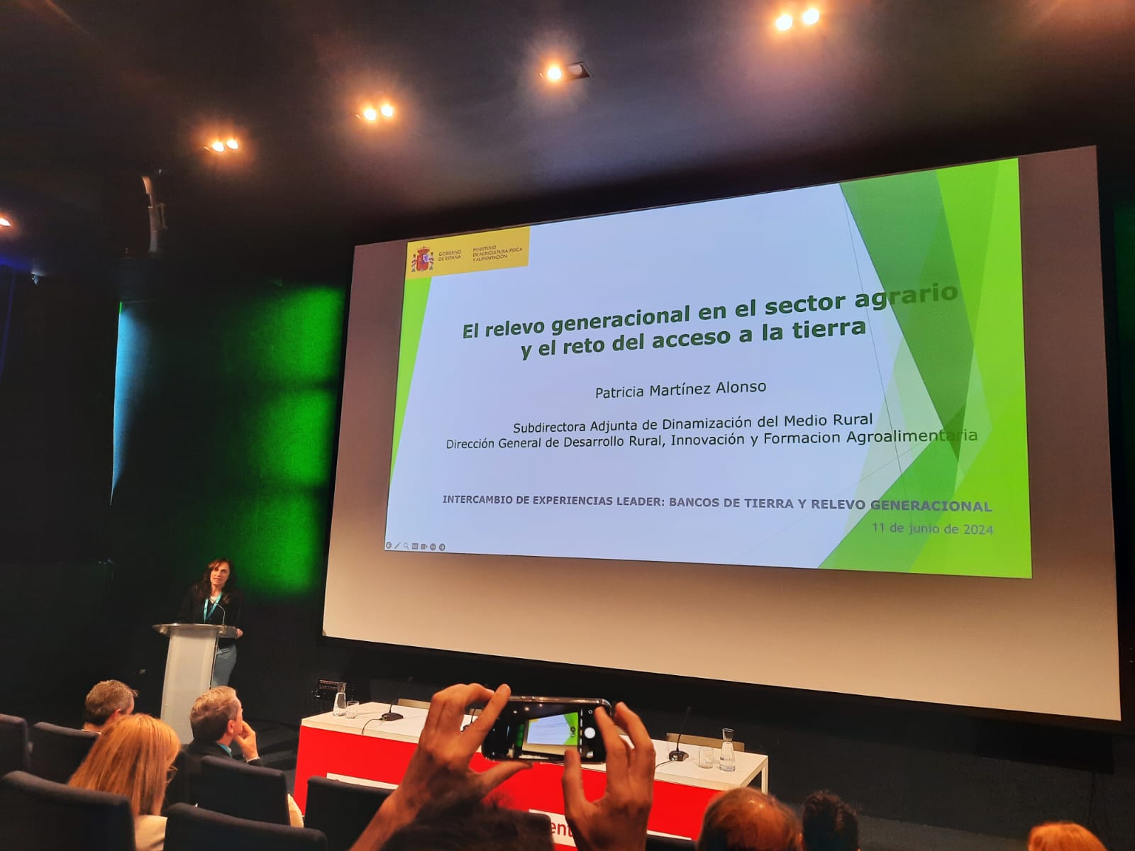 La subdirectora adjunta de Dinamización del Medio Rural, Patricia Martínez Alonso, expuso la ponencia El relevo generacional en el sector agrario y el reto del acceso a la tierra. Además de los Bancos de Tierra, señaló la importancia de los Grupos de Acción Local (GAL) por ser los más cercanos al territorio y más conectada con la gente y sus necesidades. Apuntó también a la consideración “más generosa” por parte del MAPA del concepto joven, al considerarlos hasta los 45 años, situando la edad media de la instalación los 28 años. En la exposición señaló que ninguna comarca alcanza el 40% de jefaturas de explotación menores de 45 años (con una media de 8,8%, de las que solo el 2% son mujeres). Las cifras anuncian un alto porcentaje de jubilaciones en la siguiente década: los perceptores de la PAC en 2021 menores de 40 años se sitúa en el 8,71%, mientras que se eleva al 39% en los mayores de 65 años.