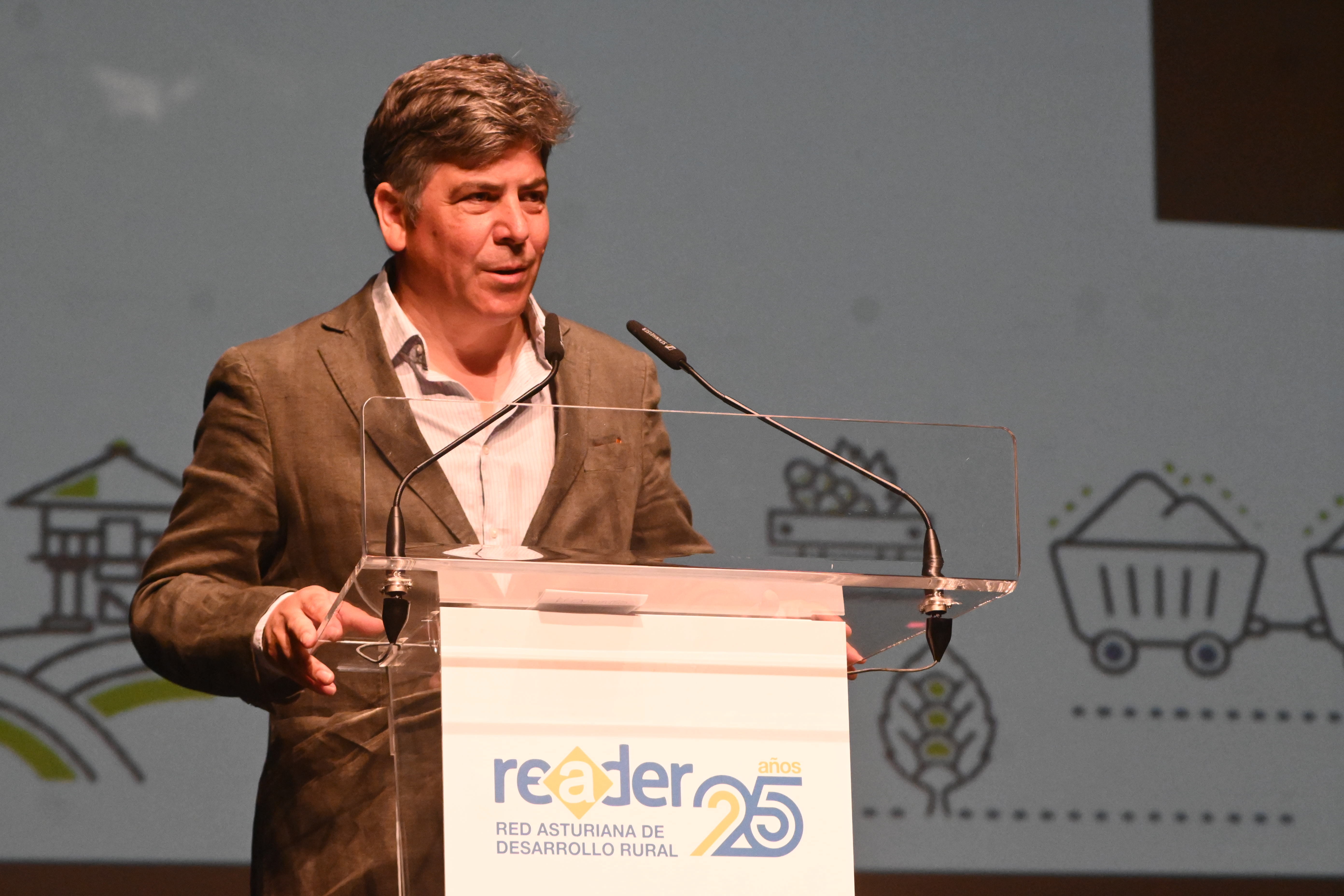 Marcelino Marcos Líndez, consejero de Medio Rural y Política Agraria, tomó a continuación la palabra para señalar “el honor y la satisfacción de acompañaros. Son 25 años que no solo merecen ser celebrados, sino reconocidos como claro compromiso colectivo, esfuerzo compartido y transformación silenciosa y profunda”. Agradeció al Gobierno de Asturias y a todas las personas y entidades implicadas el apoyo en estos 25 años, “a riesgo  de ser reiterativo”.