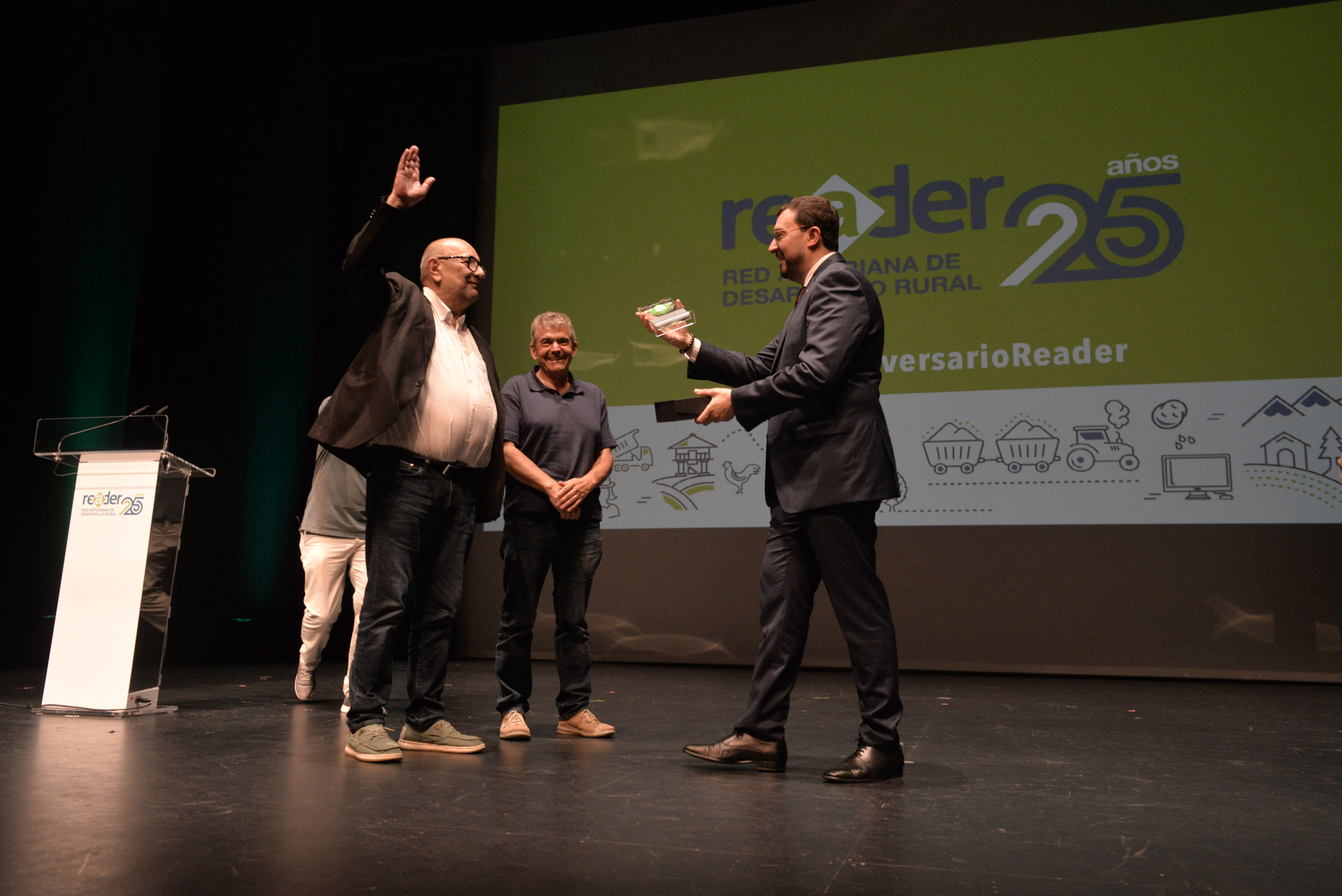 En este punto Reader quiso tener un reconocimiento para “las personas que tiran por ello”, y con esta introducción se llamó al escenario al primer presidente de la Red, Francisco González Méndez, que “salía a ver lo que se hacía en otros territorios, y ahora vienen de otros territorios a ver qué hacemos aquí”, recordaba Rebustiello. “Y después llegó Mino (Belarmino Fernández Fervienza), otra forma de hacer, que odia el avión y que es capaz de ir a Bruselas en coche”. El presidente del Principado fue el encargado de hacer entrega de sendos galardones, en medio de la reivindicación de González Méndez: “vivir en el rural no es una circunstancia, es un derecho”.
