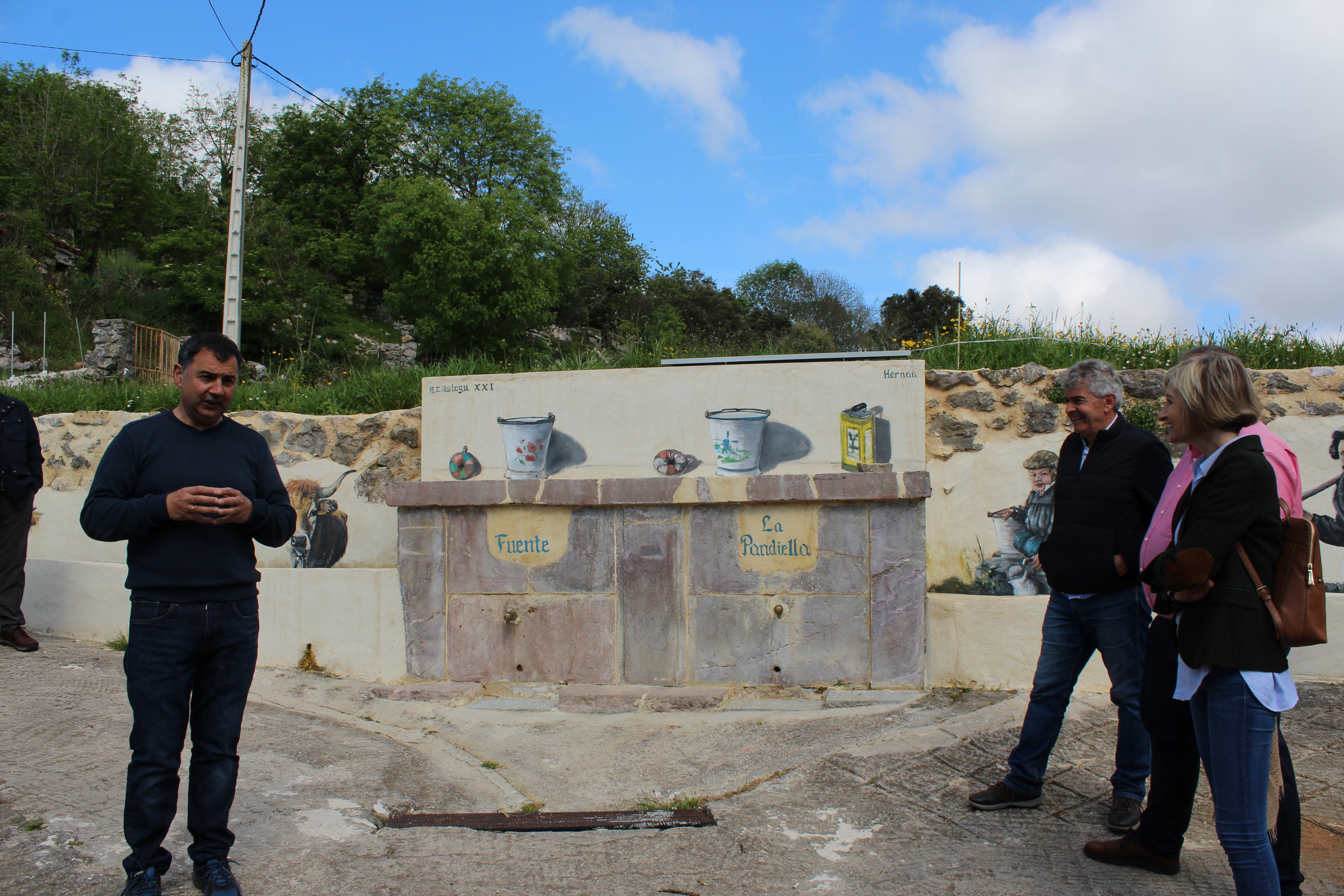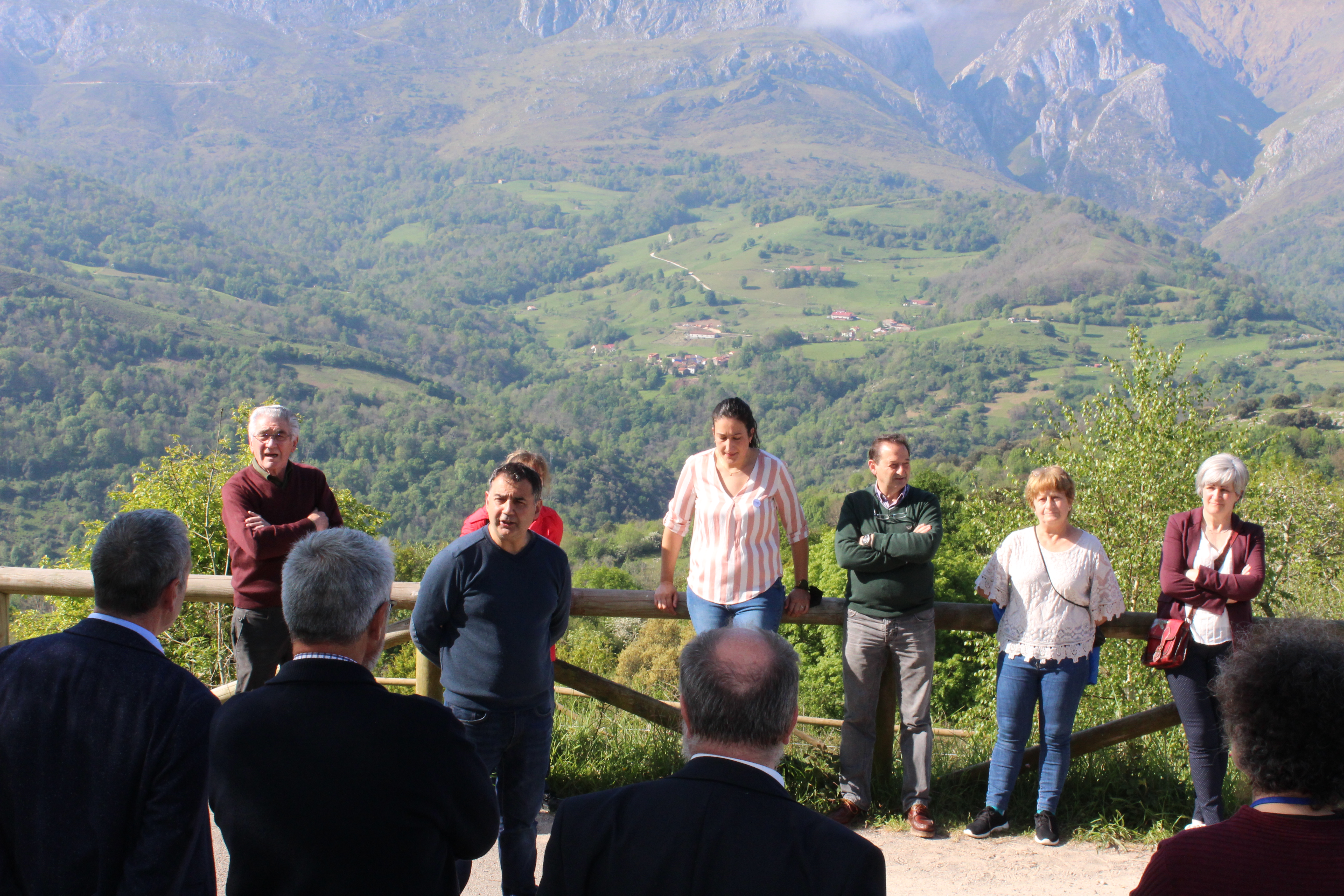 La “aldea pensada”, así es como Javier Niembro definió al pueblo de Asiegu, la cuarta aldea participante en el proyecto ‘Aldea 0’. El representante vecinal comenzó la visita por la localidad desde el Mirador Pedro Udaondo, que ofrece una preciosa perspectiva del lugar y los asentamientos adyacentes, enmarcados entre la sierra del Cuera al norte y el macizo central o de los Urrieles de los Picos de Europa al sur con el Urriellu como tótem.