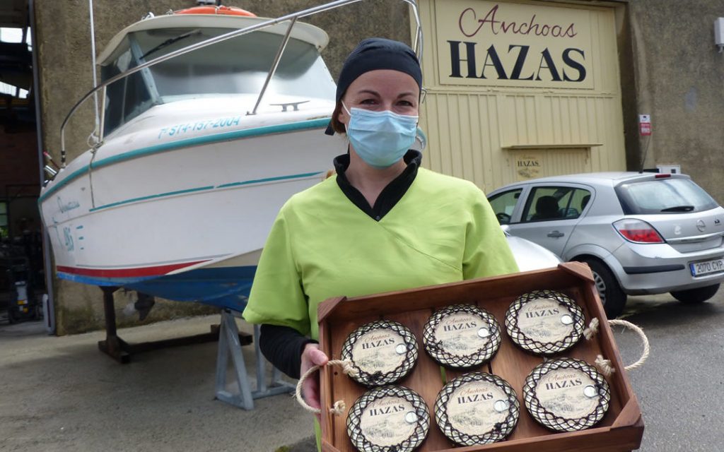 Fue en la propia tienda donde Agustín y yo empezamos a percibir el interés y la demanda que había, especialmente por parte de los turistas, por las anchoas de calidad, y gracias a las trabajadoras de antiguas conserveras lastrinas, algunas de ellas clientas habituales de Alimentación Hazas, empezamos a trabajar esta idea de negocio. Estas mujeres, alguna de ellas con más de 90 años, nos enseñaron sus recetas, nos aconsejaron y tras muchas pruebas con ellas y amigos del entorno, creamos el producto de Anchoas Hazas. Tengo que decir que sin ellas nunca hubiéramos aprendido este oficio. Además, tampoco podemos perder los sabores tradicionales de los territorios porque son una parte muy valiosa de su identidad. Y así fue como en febrero del año 2018 abrimos nuestra conservera y desde entonces no hemos parado de trabajar.