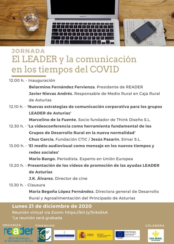 La Red Asturiana de Desarrollo Rural (READER) ha organizado la jornada 'El LEADER y la comunicación en los tiempos del COVID' el próximo lunes 21 de diciembre de 2020.